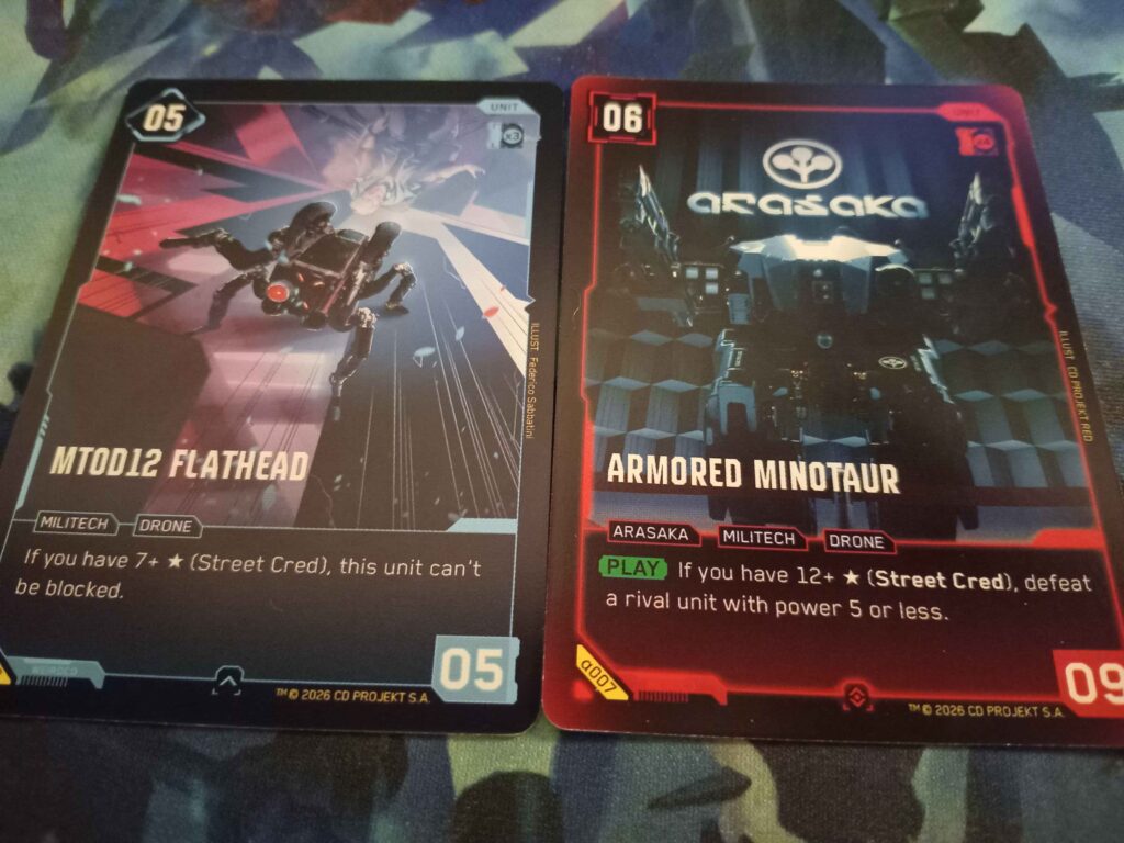 - In the Alpha kit, the Street Cred and the RAM concepts were barely reflected in the gameplay. These are part of the game main assets, and need to be an emphasis for Cyberpunk TCG to feel unique and enjoyable.